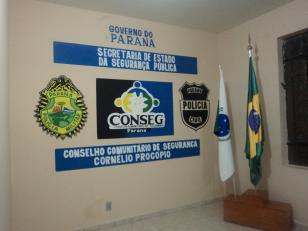 14:43 Visita da Coordenação ao CONSEG de Cornélio Procópio Coordenação Estadual visita o CONSEG Cornélio Procópio, a pedido da Diretoria e autoridades local para apresentar projetos desenvolvidos desde a sua constituição e para apresentar a nova sede do conselho.