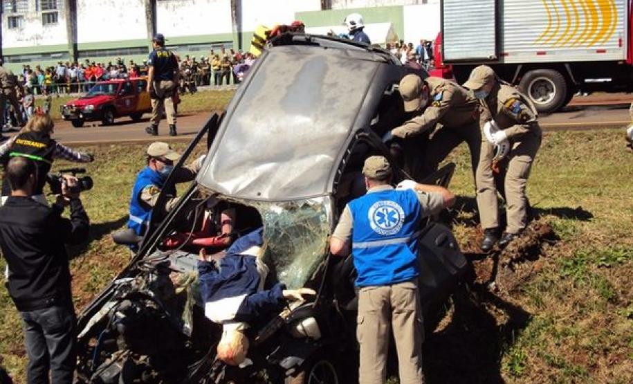 Acompanharam o megatreinamento meninos e meninas de várias escolas, entre elas unidades educativas de crianças com deficiência físicas e intelectuais e adolescentes que passam pelo processo de ressocialização. “Aproximadamente 400 pessoas acompanharam a simulação, que aconteceu em frente ao nosso estádio municipal, em uma rodovia”, explica o tenente Genuíno Luiz Dalponte, que participou da organização do megatreinamento.