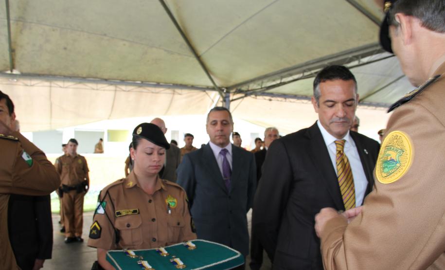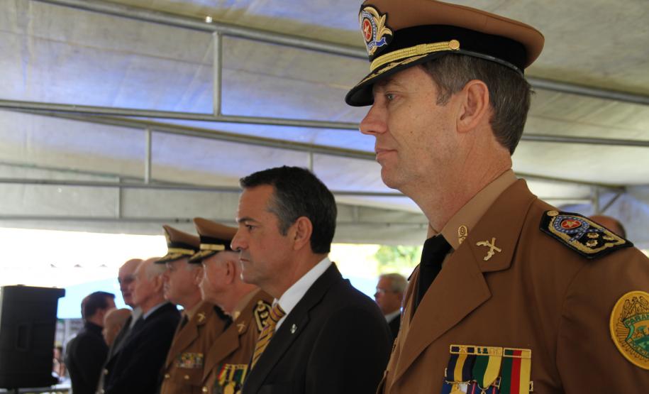 Também participaram da solenidade o subcomandante-geral da PM, coronel José Vilmar Becker, o comandante do 6.º CRPM, coronel Péricles de Matos, o diretor-geral do Departamento de Trânsito do Paraná (Detran), Marcos Elias Traad, o deputado estadual Mauro Morais, a fundadora do projeto Paz no Trânsito, Cristiane Yared, e ex-comandantes da unidade.