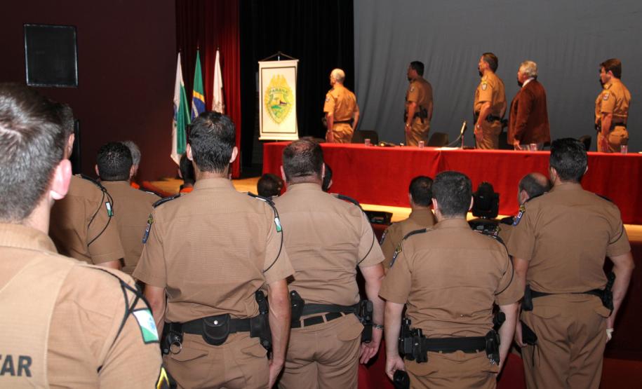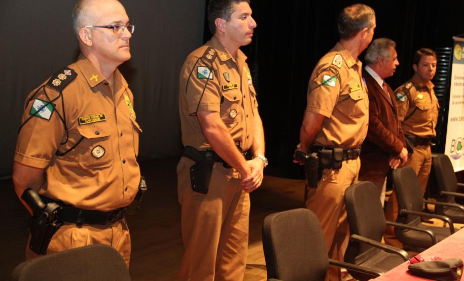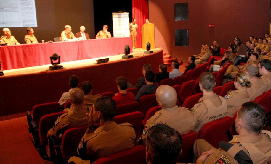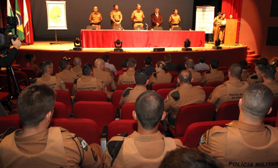 PRESENÇA - O evento de implantação do Bateu na RMC foi realizado no campus da Pontifícia Universidade Católica do Paraná (PUC), em São José dos Pinhais. Estiveram presentes o comandante do 6º CRPM e coordenador operacional da PM, coronel Péricles de