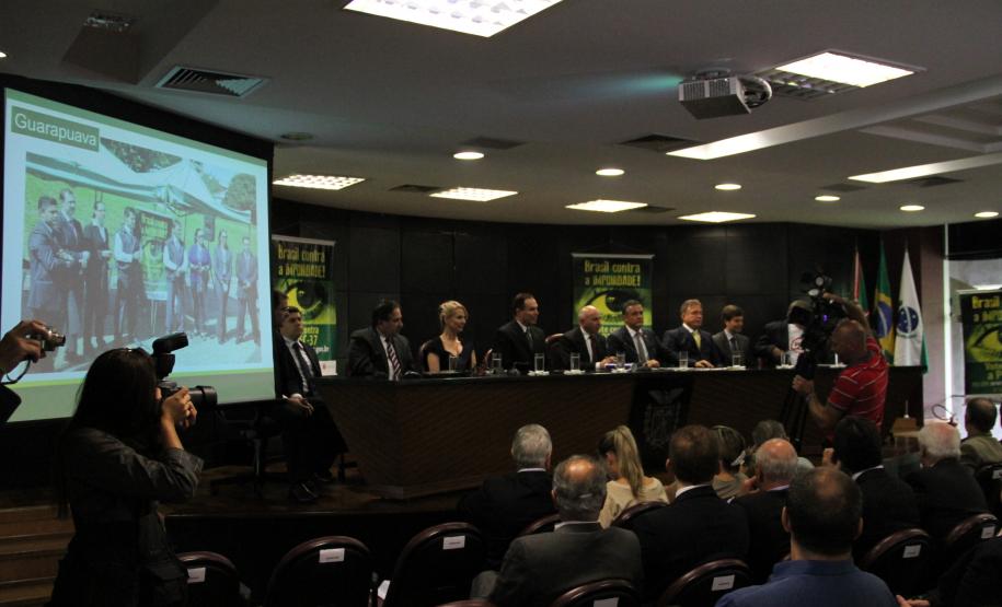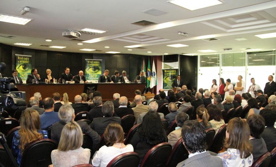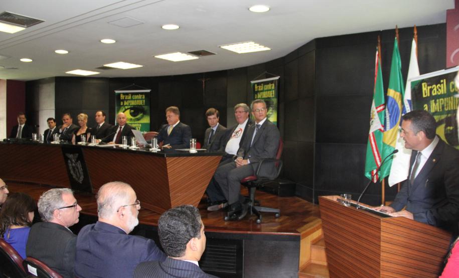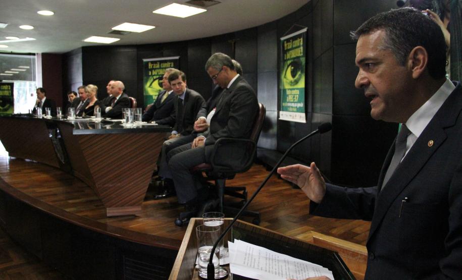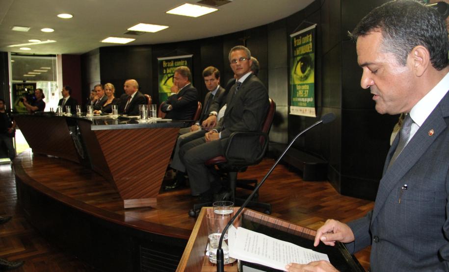 Representando o governador Beto Richa no evento, Vasques lembrou que, muito antes de começar a discussão em torno da PEC 37, foi Richa quem institucionalizou, de forma inédita, por meio de decreto, a participação de policiais civis e militares no Grupo de Atuação Especial de Combate ao Crime Organizado (Gaeco), do Ministério Público do Paraná, em março de 2012.