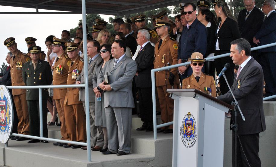 Durante o evento, o secretário da Segurança Pública ressaltou a contratação de novos policiais na gestão do governador Beto Richa e a realização de novo concurso público, que está em andamento. “Conseguimos incorporar, nestes quase três anos, 3.120 policiais. O efetivo anterior era de 17 mil policiais, número próximo àquele que existia em 1997. Também estamos com um novo concurso em andamento para a admissão de mais de 5 mil policiais militares e bombeiros militares”, afirmou.