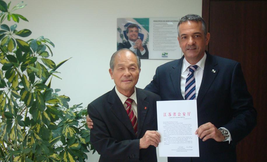 O secretário da Segurança Pública, Cid Vasques, recebeu a visita do presidente da Câmara de Comércio Brasil-China do Paraná, Tony Chiu, que, em nome da delegação da Secretaria de Segurança Pública da Província de Jiangsu, da China, agradeceu a troca de informação e o apoio iniciados com a cúpula da Segurança Pública no Paraná, no mês de janeiro.