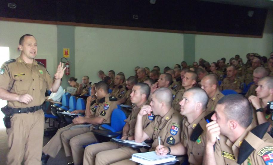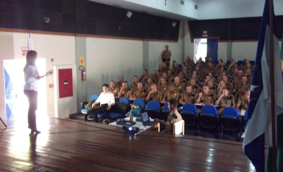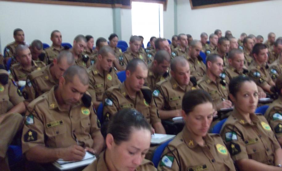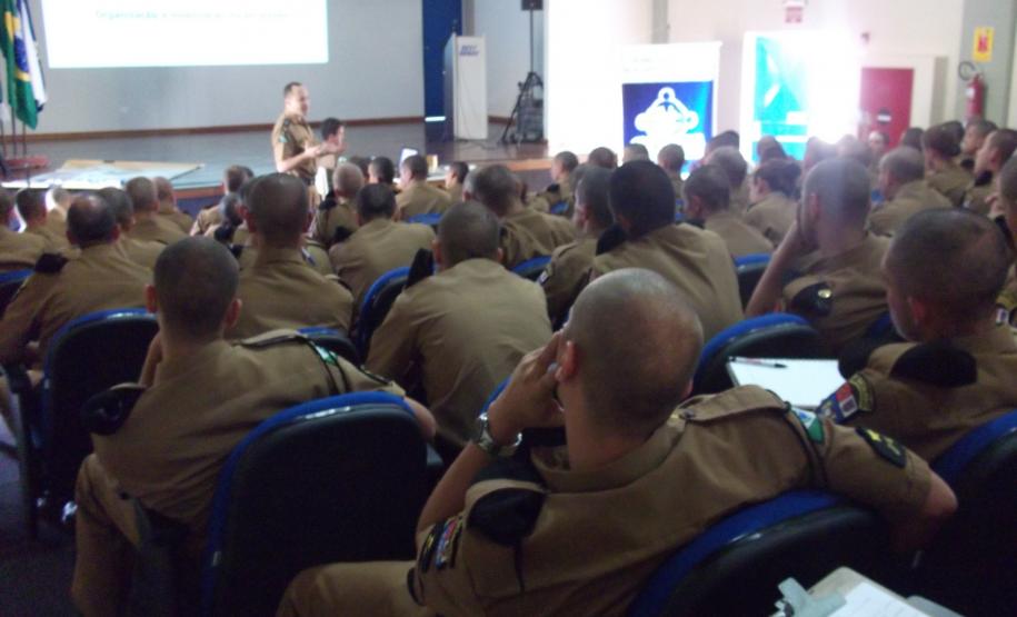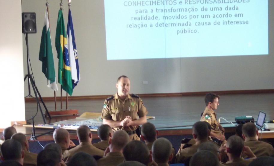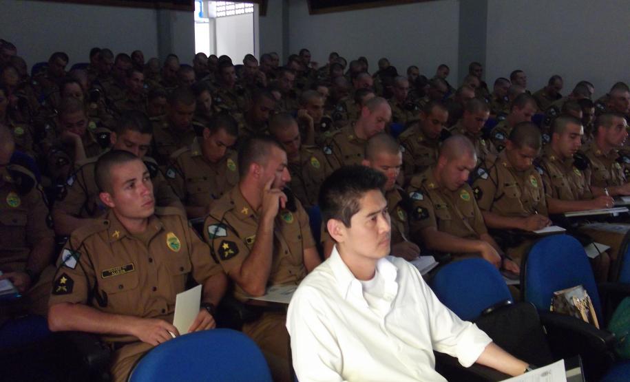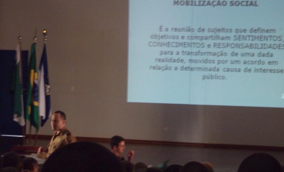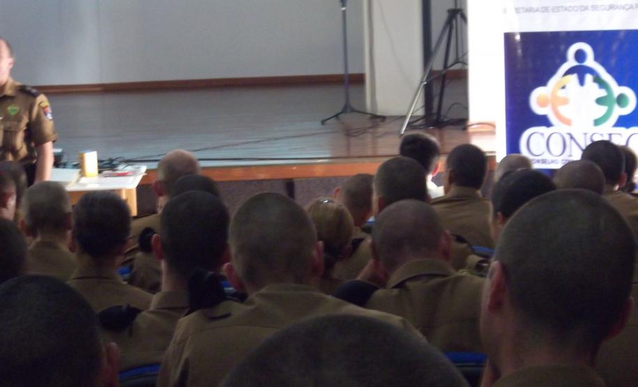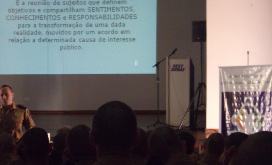 Proferiram a palestra a Coordenadora Michelle Cabral, o qual contextualizou a história dos CONSEG’s no Paraná, desde a década de 80, priorizando as boas práticas destes, focando no Policiamento Comunitário, após, ministrou o Representante da Polícia Militar, Ten. Nixon Gonzaga, com o tema Mobilização Social. Participaram da palestra, 106 soldados em formação. Para Michelle Cabral, esta iniciativa do comando do 1° BPM em convidar a Coordenação a passar a experiência adquirida dia a dia de convívio com a comunidade é 100% valida, ainda mais quando ao final de sua fala alunos interessados em aprender mais, nos procuram para tirar dúvidas, elogiar o trabalho realizado e se colocar a disposição para auxiliar e se integrar as comunidades. Por fim, ficou claro a eles que o CONSEG é uma grande ferramenta de ORGANIZAÇÃO E DE DESENVOLVIMENTO DA SOCIEDADE, bem como, do EXERCÍCIO DA CIDADANIA.