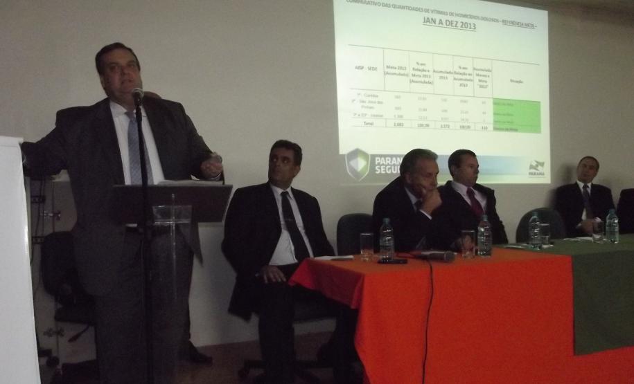 Foram apresentadas as principais ações colocadas em prática nos últimos três anos, na área da Segurança Pública, como reestruturação dos efetivos policiais, aquisição de novas viaturas, grandes apreensões de drogas e redução do índice de homicídios dolosos, que é o indicador utilizado mundialmente para medir a eficiência e a eficácia na área da segurança. “Na nossa gestão, metas são traçadas e são cobradas”, afirmou o secretário.