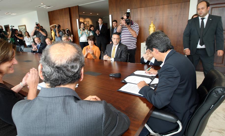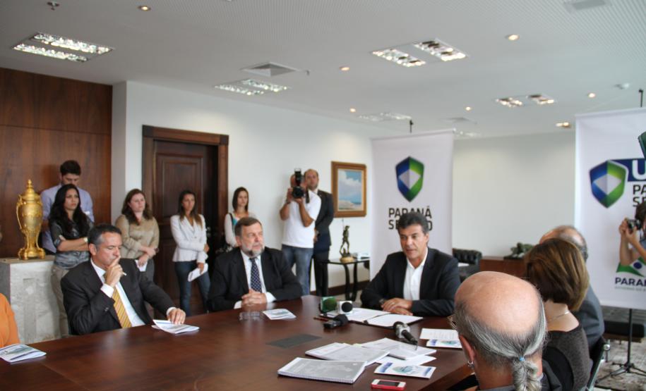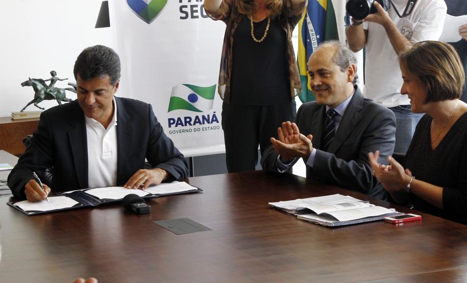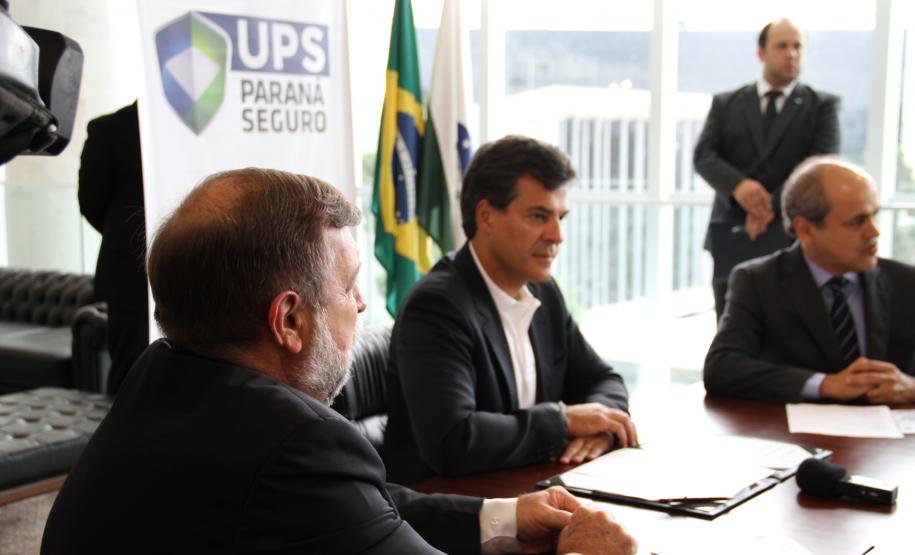 O governador Beto Richa assinou nesta segunda-feira (14), no Palácio Iguaçu, termo de cooperação técnica para a realização de ações de desenvolvimento e cidadania nas regiões das Unidades Paraná Seguro (UPS). O objetivo do acordo – que envolve município de Curitiba, Ministério Público do Paraná, Tribunal de Contas do Estado, entre outras instituições – é levar projetos que promovam o desenvolvimento econômico e social dessas comunidades.