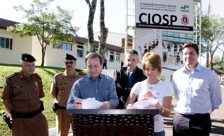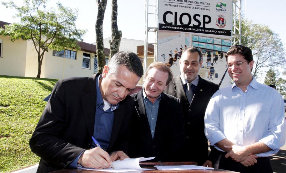 Durante a ocasião, a prefeitura de Pato Branco assinou o protocolo de intenções com o Governo do Estado para implantação do Centro Integrado de Operações de Segurança Pública (Ciosp), que possibilitará a instalação de monitoramento de imagens em todo município e também o termo para instalação do primeiro escritório da Polícia Científica na cidade.