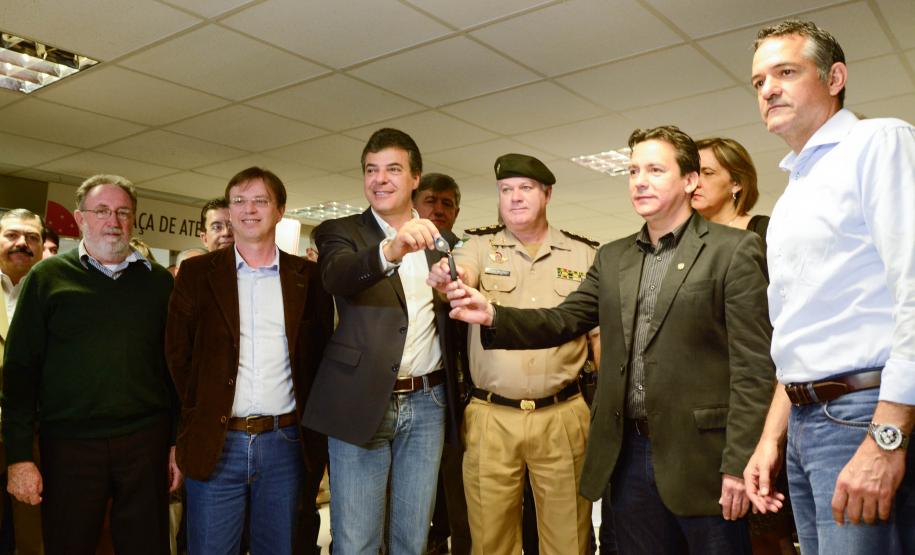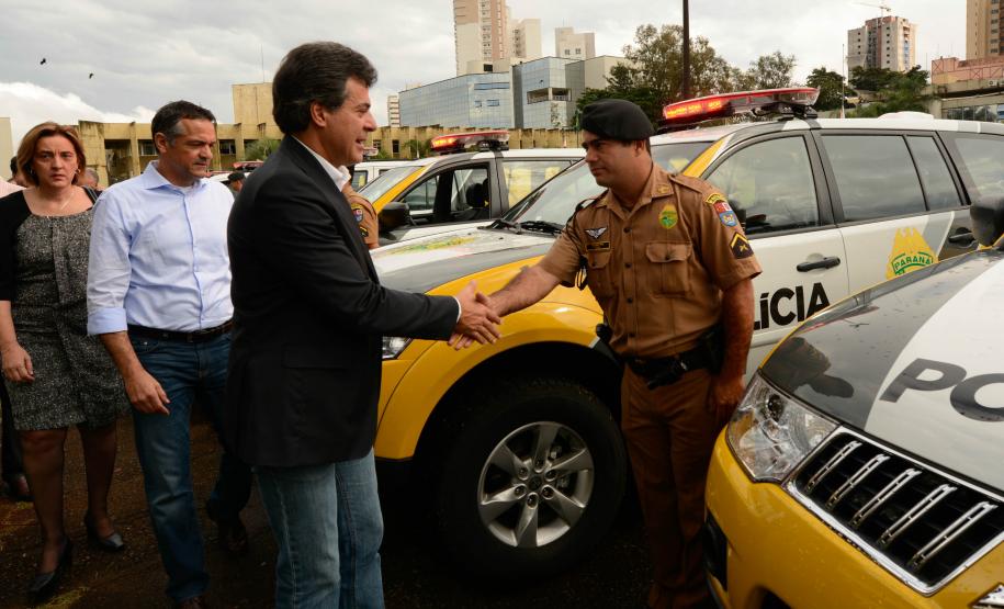 VIATURAS - No mesmo encontro, o governador entregou 12 viaturas para Polícia Militar e quatro viaturas para a Polícia Civil de Londrina. Os novos veículos fazem parte do programa Paraná Seguro, de ampliação e renovação da frota das polícias, do Corpo de Bombeiros, do Instituto Médico-Legal e Instituto de Criminalística. Ao todo, o Governo do Estado adquiriu e está entregando 1.220 veículos.
