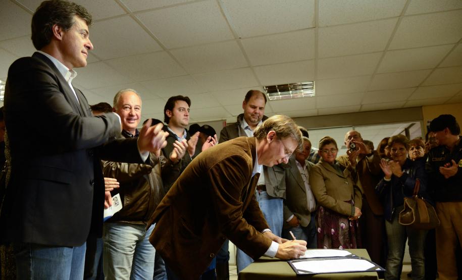 O governador Beto Richa, o secretário estadual da Segurança Pública, Cid Vasques, a secretária estadual da Justiça, Cidadania e Direitos Humanos, Maria Tereza Uille Gomes, e o prefeito de Londrina, Alexandre Kireeff, assinaram nesta sexta-feira (19/07) o termo de cooperação técnica para a realização do Programa UPS – Cidadania, em Londrina, norte do Paraná.