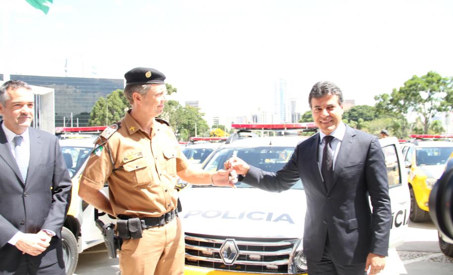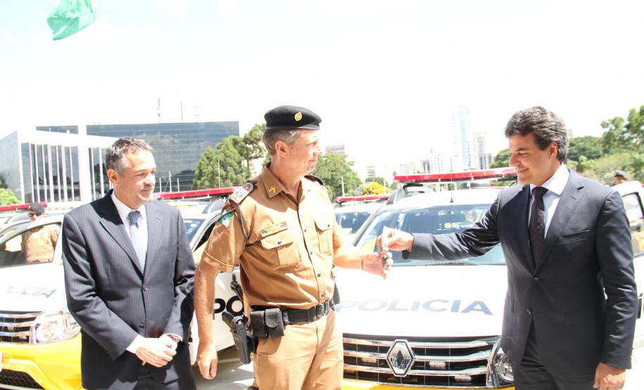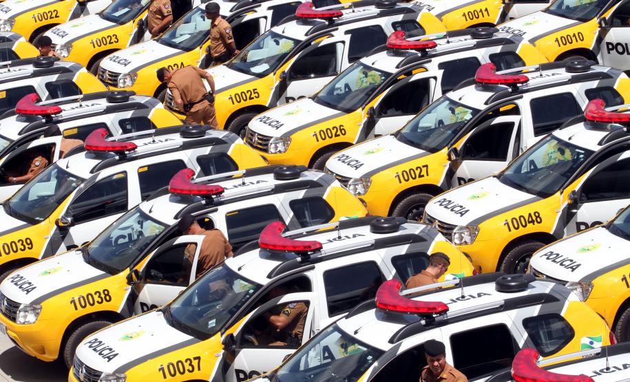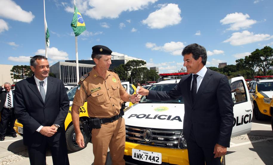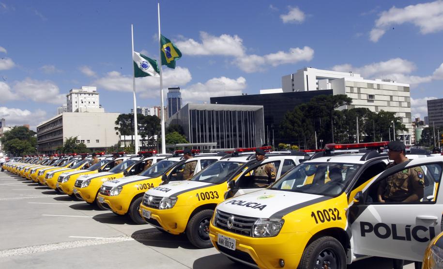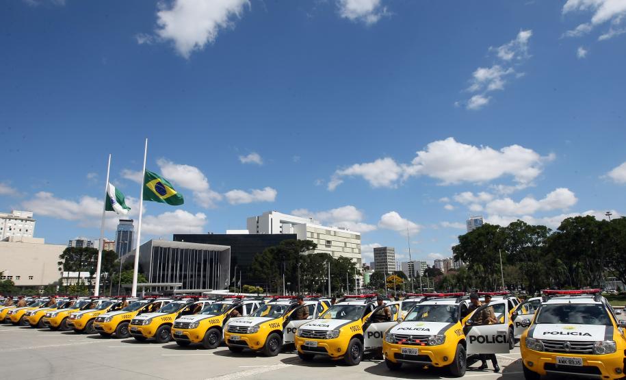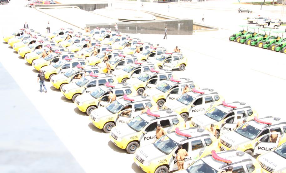 O governador Beto Richa entregou, nesta segunda-feira (28/01), 41 novas viaturas modelo Duster para a Polícia Militar e outras sete caminhonetes Frontier para a Defesa Civil. Os novos veículos vão reforçar a frota estadual e fazem parte do lote de 1.220 que foram adquiridos pelo Estado com recursos do Fundo Especial de Segurança Pública (Funesp).