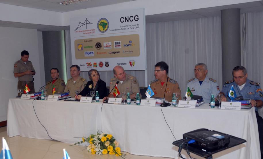 O comandante-geral da Polícia Militar do Paraná, coronel Roberson Luiz Bondaruk, participou da 3ª reunião do Conselho Nacional dos Comandantes-Gerais das polícias militares e Corpo de Bombeiros, realizado nesta sexta-feira (30), em Florianópolis. As autoridades debateram propostas para regulamentação de uma lei orgânica que padroniza o funcionamento das polícias, além de outros assuntos de interesse dos conselheiros.