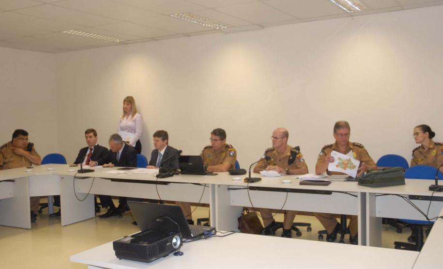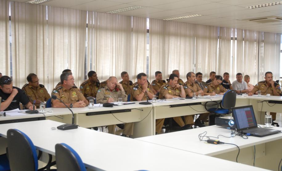 Outra reunião de balanço das atividades ocorreu na última quarta-feira (12), com a presença do comandante-geral da Polícia Militar, coronel Roberson Bondaruk; do comandante do Corpo de Bombeiros, coronel Luiz Henrique Pombo do Nascimento; do delegado-geral da Polícia Civil, Marcus Vinícius da Costa Michelotto, e de integrantes de diversos setores administrativos da Segurança Pública.