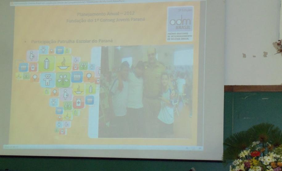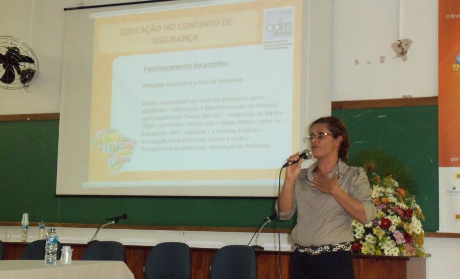 O referido Projeto de Educação no Contexto de Segurança foi apresentado pela Srª. Aparecida Benito Pereira aos organizadores do Seminário, contando com representante da Coordenação Estadual dos CONSEGs, e do Dr. Carlos Alberto Peixoto, Coordenador Estadual das Políticas Públicas Sobre Drogas. Dr. Peixoto destacou a criação do CONSEG Jovem naquele município, como iniciativa pioneira no país, e a importância da replicação do conceito no Estado como forma de contribuir para a construção de políticas públicas.