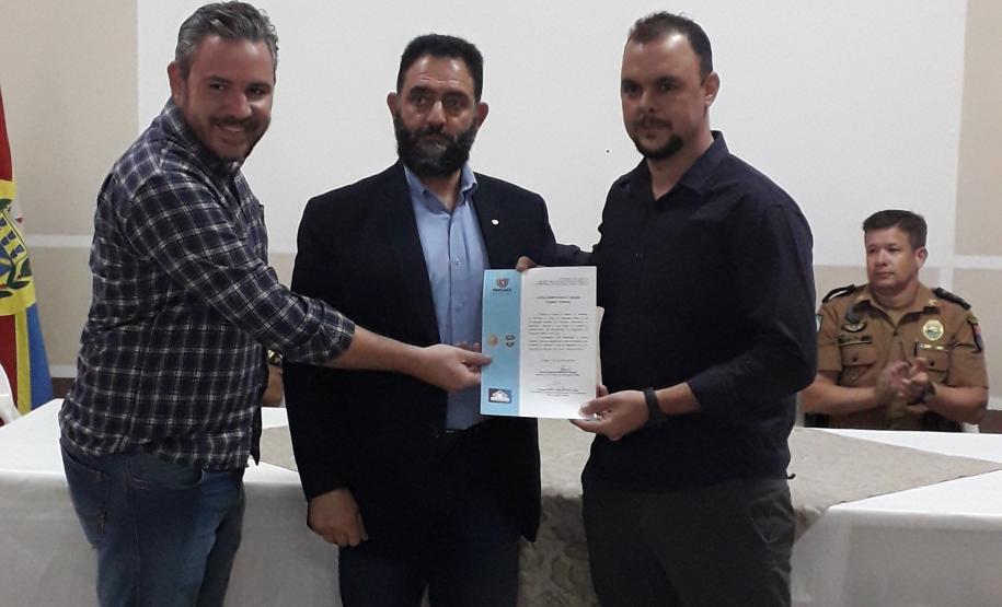 O Presidente eleito para o biênio 2019-2021, Sr. Joel Salatti Nicola recebeu a Carta Constitutiva das mãos do Coordenador Estadual, representando toda a diretoria eleita.