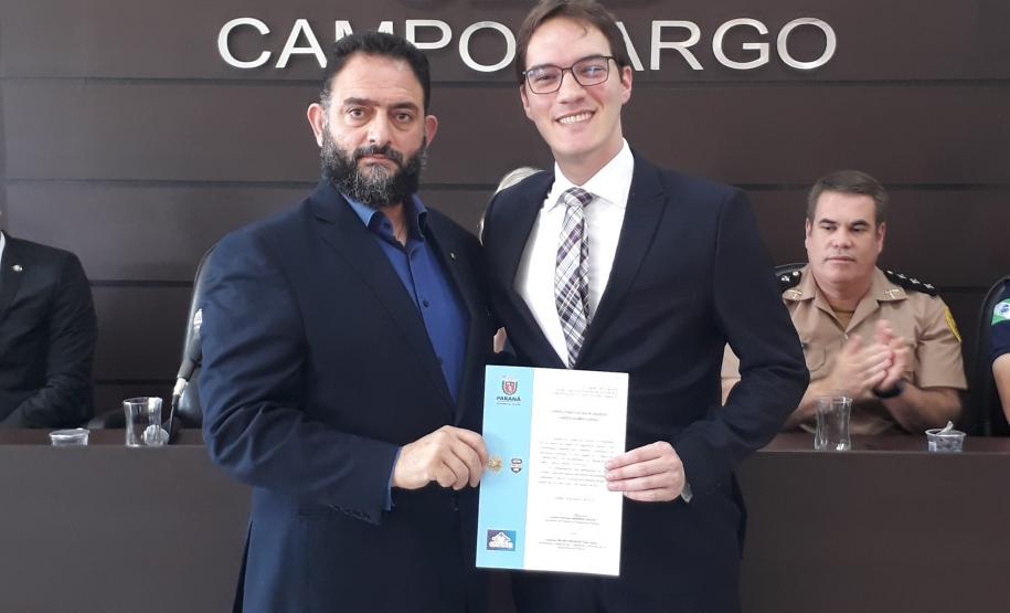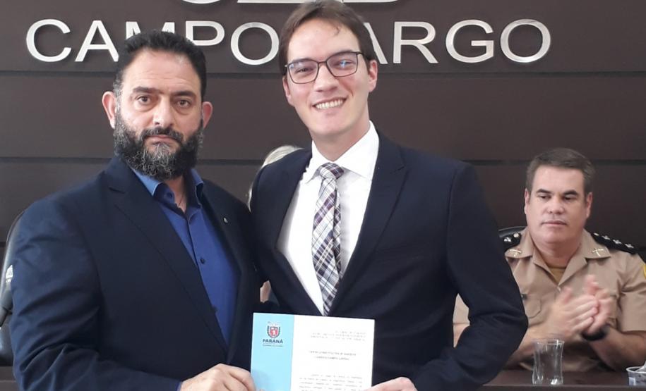 O Presidente eleito para o biênio 2019-2021, Sr. Pedro Parolin Teixiera, recebeu a Carta Constitutiva das mãos do Coordenador Estadual, representando toda a diretoria eleita.
