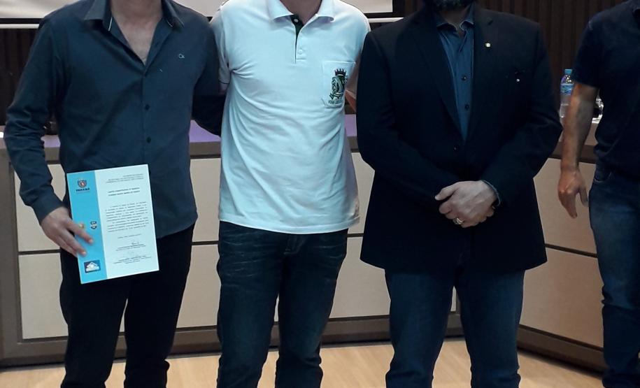 O Presidente eleito para o biênio 2019-2021, Sr. Rivael Mattei Hinzelmann recebeu a Carta Constitutiva das mãos do Coordenador Estadual, representando toda a diretoria eleita.