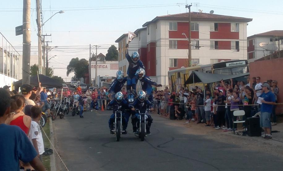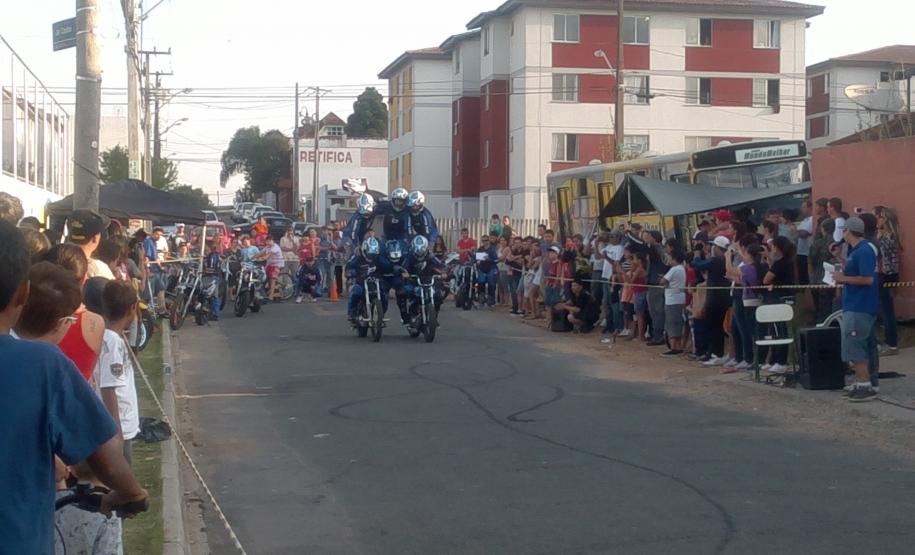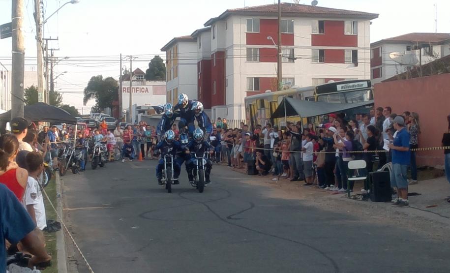 No final do evento o Moto Clube Bola de Neve se apresentou, realizando várias manobras e façanhas com as motos.